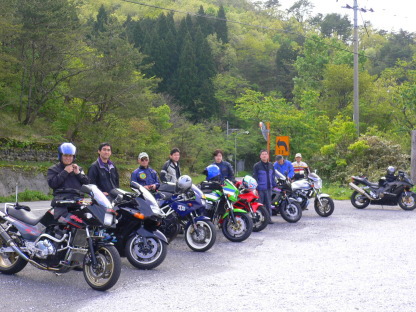 2005年春、1年ブランクの後再び行った九州との合同ツーリング。行き先は四国。1日目。四国カルストに登る林道では、隊長、おさむ氏、Tに続いて追いかけていく青いTRX850に乗る銀だこ氏の姿が・・・。残り3台に全くひけを取らずにバンクさせながら登っていく銀だこ氏の後姿をコーナー3つ程眺めながら「一体何者??」と思ってしまいました。なぜコーナー3つだったかと言うと、4つ目のコーナーをクリアした頃には前の4台は陰も形もなくなっていたからです。だいぶ登った後涼しい顔をして皆を待っていた4台の中ににっこりと銀だこ氏の笑顔がありました。