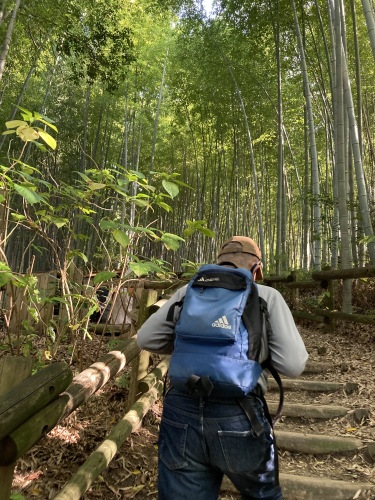 甘樫丘で合流、自転車で飛鳥寺〜酒船石を廻ります。明日香に通って1年になるのに今までは庭の整備に目一杯。実はゆっくり自転車で廻るのは初めてでした。酒船石に登る竹林の道、こんな雰囲気が良かったかな。
