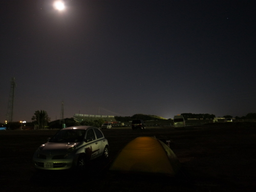 予行演習、その3。ミミ坊は大学生になって免許取得、マーチ号を手に入れました。彼はこれから世界が広い事をマーチ号とともに実感していくでしょう。私は時々それに便乗させて貰う事を密かに算段しています。お互い共通の趣味にレース観戦があります。6月はSuperGT観戦で鈴鹿に行きました。私は資金と宿泊設備(=テント)とノウハウを提供。彼には脚を提供して貰いました。