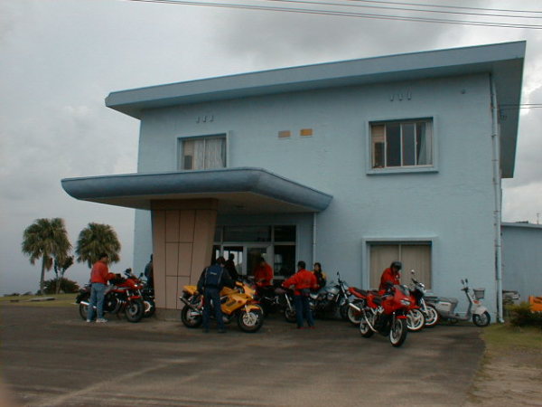 福岡から1日掛けて辿り着いたのは崖の上に建っている今はなき「ケープ荘」。う〜ん、この構造は今振り返ると凄い。台風銀座に位置するロケーション、風に対抗する為にシェルターのような外観だ。