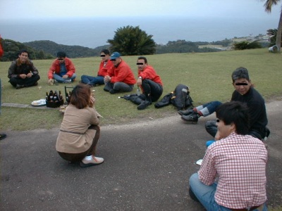 到着後、参加者がおもむろに芝生に座り出します。何を始めるのかと思えば到着祝の乾杯、これは元祖RYUBE〜RYUBE九州の伝統行事。パッキングも解かずにいきなり何?と当時は思いましたが。遠路遥々到着した後のビールの美味しかった事!