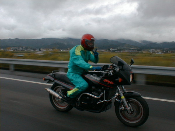 超改造Ninja (GPZ900R)に乗る忍者親分。格好良くて優しくて包容力がある、まさに絵に描いたような”親分”。所属会社でも重鎮だった事はその後知る事になります。プライベートでも飲みに連れて行って貰い、個人的にもとてもお世話になりました。大型はもうお乗りにはなられていないようだが、今もお元気かな。