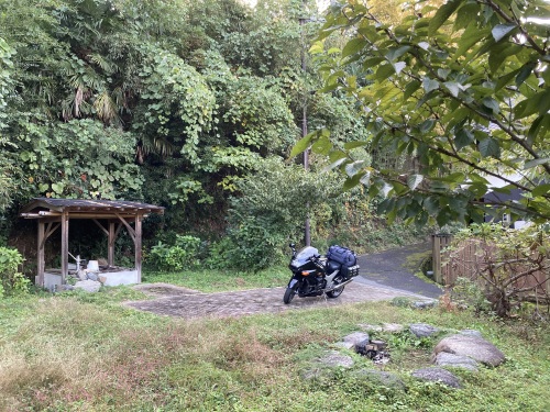午後14時半、目的地「小船梅林」に到着。荷物を降ろした後ZX-11の場所を少し移動させようとしてセルを廻すと「キュル・・・」と嫌な感触。ここまで何事も無く(?朝の立ちコケは??)、走り切ってこのタイミング!?取り敢えずは悪あがきはせずに明日朝の始動に掛ける事に。抜群のロケーション。何よりこの場所を運営する集落の方の心意気が素晴らしい。楽しい時間を過ごす事が出来ました。