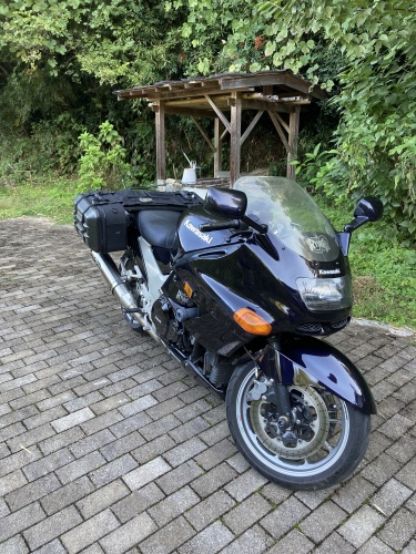 フレームスライダーとごっついサイドバックが車重を受けてくれて、ZX-11自体はアンダーカウルの端がほんの少しすれただけで、ほとんど無傷。「Ladybird」のフレームスライダーはほんと優秀だ。但しプラグをかぶったかエンジンがなかなか掛からない。立ちゴケから30分経過。ダメ元でこの立地を利用して坂道発進を試みてみたら見事!ようやくエンジン始動、遅ればせながら集合場所の「オークワ五條」に向かいます。