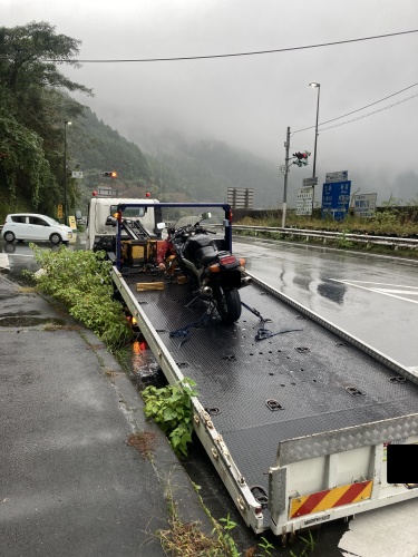 ありがたい事(?)に、旅の途中でZX-11が停まってしまう事は何度も経験済。なので停まった後の事もベテランです。ここはレッカーが来るのを待つしかない。そうしている間にSさん@CB1000とくろちゃんさん@MT-01が交差点に到着。御心配お掛けしましたが大丈夫です。レッカーレスキュー済の旨御説明してお見送りしました。