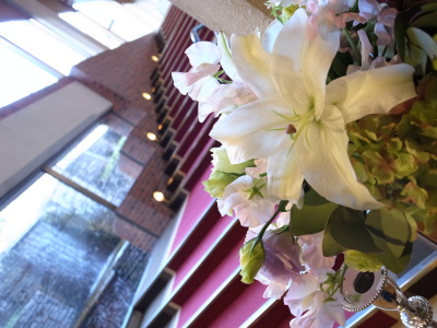 春の結婚式らしく、会場のあちこちに花が飾られていました。今日は I ちゃんの他にも式を挙げている組が多くて、ホテルは活気に満ちていました。 | |