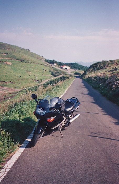 ”バイクは実際に飛べる訳ではない”と書きましたが、飛んでいる気持ちになれる場所に行く事はできます。私が知っているイチオシの場所が四国カルストです。愛媛県と高知県の県境にある標高1400mのカルスト台地、初めて登った時はひときわ印象的でした。昔の国道440号はとんでもない悪路で見通しも悪く必死でタイトコーナーを登っていくと、ある場所から突然頭上に視界を遮るものがなくなります。澄んだ空の下を高原の道が続き、眼下四国の山が連なり遠くは石鎚山、太平洋まで眺める事ができました。