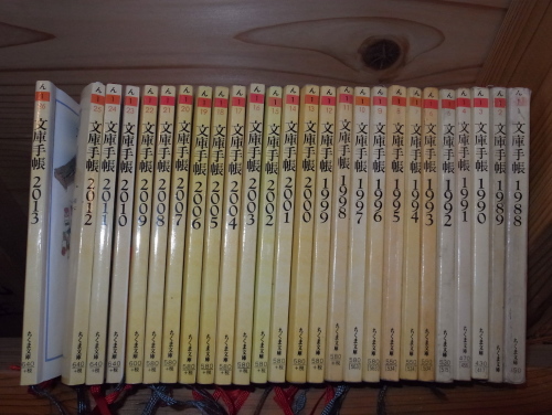 年末年始、私の恒例行事のひとつに「文庫手帳」の更新作業というのがあります。更新作業といっても1年間使った文庫手帳を屋根裏になおし、ミミオヤジが買ってきてくれた新しいものをおろすだけなのですが、ここ数年はバックナンバーを目にする度に自分が歳を取りオッサンになった事を視覚的に実感させられる次第です。