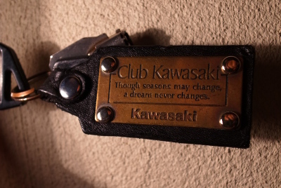先程のメッセージの元ネタ、”Club Kawasaki”のキーホルダー。グローブと同じ22年選手。こちらは去年ベースの革が切れたので、某店にお願いして革部分を新調しプレートを移植し再作成。そのベースの仕上げが綺麗な四角形になっていないのは若干不満。但しこれも数年経てば愛嬌になります。