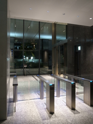 東京メトロの改札・・・ではなくオフィス入口のセキュリティゲートです。IDカードをかざさないと通行ができません。職場でもトイレに出るのも会議室に移動するにもIDカード必須。前の人につられてかざし忘れると以後扉を通行ができなくなります。