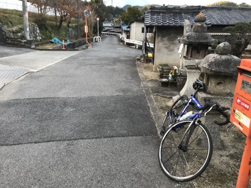 お気に入りコース途中にある、そんな名もなき街道。国道を分岐して集落を抜け、またすぐに国道に吸収されるのですが、生活感が程よく残った道です。こんな感じでよさそうな道があったら寄り道をしてみます。・・・中には名も無き街道を辿っていくもニュータウンの中で忽然と道が消えてしまったりもします。「この道がどこに続いているのだろう!?」という旅の原点が面白い。