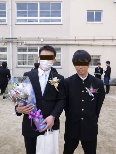 出席者全員がマスク姿。証書授与が一人ひとり手渡しから名前読み上げ/代表者受け取りになったり、来賓挨拶も無くなりましたが、校長先生式辞、生徒代表者の言葉、初めて聞いた”群青”も歌われました。「練習が全然出来なかった」との事も、進行は小気味良く素朴で飾らない式は寧ろ良かったのでは・・・。