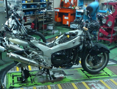 緊急入院させた神奈川の赤男爵店で言われた「幾らまでなら整備にお金を掛けれますか?」という問いもショックでした。要約すると「完全な状態にするにはお金が掛かりますよ。どこかで妥協しますか?どうしますか?」という事。現役車と思って乗ってきた私は思わず「なに〜!」とカッとしてしまいました。・・・結論から言うと、ここの整備士さんは真面目で、言っている事は本質。ストレートにぶつけてきただけです。曖昧される位なら本質を言って貰ったがまだありがたい。でも大事に乗っている人間の気持ちというものもあります。肉親が病気になって医者に相談に行ったら「歳ですからね、治療しますか?妥協しますか?」といきなり面と向かって言われたらショックです。申し訳ないけれど、私は神奈川の店で修理をする気にはなれませんでした。幸いヒューズが飛ぶトラブルは次の日嘘のように出なくなった為(原因確定には困るのだが)、再び走行中に停まるリスクはあっても、私の気持ちと考えを理解しZX-11をずっと観てくれている近所の赤男爵店・T工場長に委ねる事にしました。