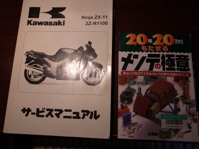 自分で整備する訳では無いので専門書では難しすぎる為、まずはmoonさんから頂いたサービスマニュアルを何度も読んでみました。配線系統図は役に立ち、接触不良を起こしたIGラインを辿る事でメインハーネス以外で交換する部品を絞り込む事ができました。ストックしている雑誌も改めて流し読み。電装系は「カスタムピープル」の特集は参考になりました。あと意外と役に立つのが図書館。バイク構造を図解した本などは結構新しくて判り易い。車の整備本などもエンジンに関しては参考になります。特に気に入ったのが 山海堂出版の「20年・20万キロもたせるメンテの極意」(広田民郎氏著)。具体的に劣化パーツの交換時期目安が載っていて参考になります。その上普通の読み物のようなとっつき易さは、私のような初心者にピッタリ。2001年の本で古いのが珠にキズですが、自分でストックしておこうか思案中。