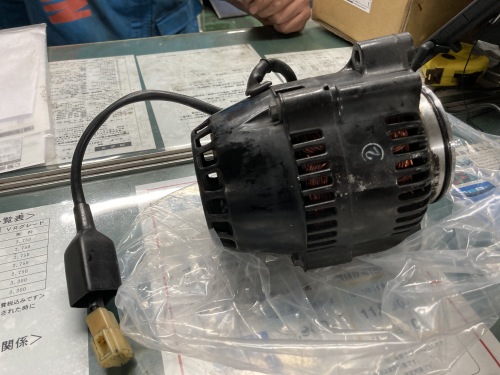 取り外したオルタネータ。エンジン左後方に設置されている(トップの写真)。旧「日本電装」製(現在のDENSO)。