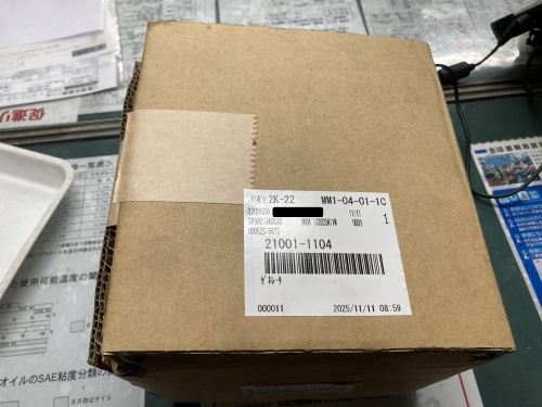 送られてきた純正パーツが入った箱。代替品番ではなくZX-11(ZZ-R1100D)そのものの品番だったらしい。D型生産中止になったのは2001年。大方四半世紀経ってもこうして純正パーツをストックしてくれているカワサキは凄い!そもそも発電設備が30年間持つ事自体が凄いけれど。