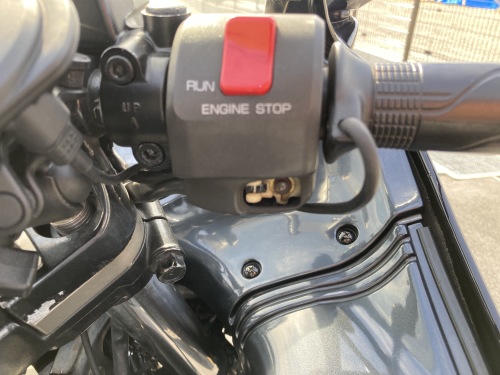 11月24日(月)の”明日香村〜天理”朝駆け「彩華ラーメン本店」駐車場で起こったセルスイッチの欠落。幸いエンジンは掛かった後だったので、そのまま赤男爵店直行。T工場長はお休みでMさん(初めてお世話になった)に相談。スイッチのみの取扱は無くて、右スイッチボックスAssyでの交換。カワサキに純正在庫はあるとの事。