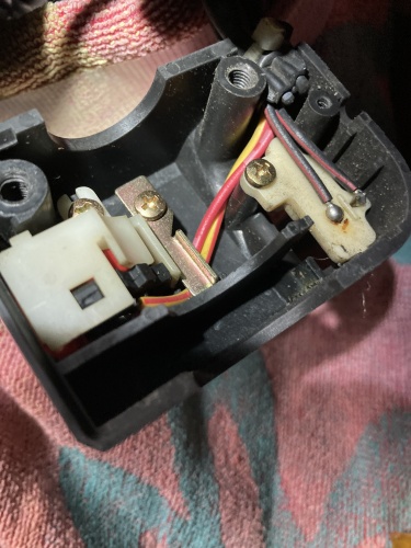 ストックのスイッチに入替。ピンを差したところ。スイッチを仮押ししてみたら全く問題無。ここまで怖い位に順調。