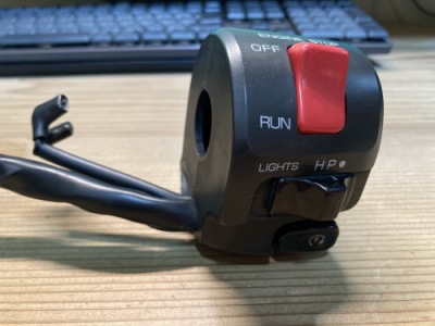 US仕様の私のZX-11のそれとは異なり、ヘッドライトのオンオフスイッチがついている。中古パーツではあるが大事に室内保管していたので状態は悪くなさそう。セルスイッチの感触も良好。ちなみに左スイッチボックスも在庫していたがホーンボタンが欠落していた。案外このスイッチ使っている間に破損するのかもしれない。