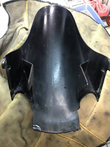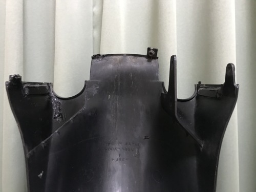 7年前大阪の白木屋で補修して貰ったフェンダー。徐々にネジ取り付け部から破損が進み、年末いよいよ車体保持も厳しくなった。赤男爵店T工場長に相談。修理には限界もあるのでアフターパーツ購入も検討してはどうか、との助言も頂いた。確かに新品に比べると修復は強度や信頼性のリスクはあるが、今後ますます純正部品の欠品が進む中、使えるパーツは修復して使う道を模索したい。それに私はこのZX-11純正フェンダーの形が好きなので、それ以外の選択肢を検討する。