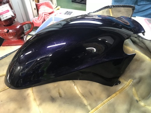 今回”塗装部”に作業をお願いしたが、ほぼ完璧かつ綺麗に仕上がって帰ってきた。カウル修復は破損状況や部位によるので、いつも今回のようにうまくゆくとは限らないとは思うが、普段整備をお世話になっている店が一番有力な選択肢、というのはありがたい。赤男爵店に関しては周りにも結構アンチがいるのだが、私は今回のような受けるに難しい依頼も、引き受けてきちんと仕上げる事ができる間口の広さを結構評価している。絶版車に乗る者としては、今回のような相談できるかどうかはバイクを維持する上でかなり大きい。この辺りはもっと宣伝してもいいのに、と思うのだが。