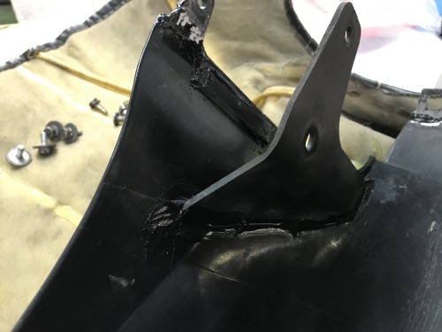 別角度からの視点。パテ + ボンドで留めたような感じだが、しっかりとついていたので安心した。フェンダーの裏側なので一度取り付けてしまえば外からは見えない。