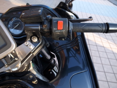 ホンダ純正グリップヒーターの売りはグリップの細さだが、ZX-11純正のグリップよりもむしろ細かった。操作感も上々。但し取り付けの関係上気になった点が3つ。 @若干ハイスロットル気味になった A電源コードが手前に来た Bグリップエンドとグリップの隙間は想定より大きかった @はT工場長に引渡し前に言われたが特に問題なし。Aは取付前からネットの記事で判っていて心配したが、つけてみたら特に違和感は感じなかった。B隙間はちょっと気になるかな。これは隙間を埋めるカラーを作る等いずれ考えていこうと思っている。ちなみにグリップ径はきつい位だったようで、数年後グラグラする心配もなさそうだ。 |