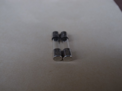 ガラス管ヒューズ。Amazonで購入。1個当たりの単価は数百円で送料の方が高い。 |