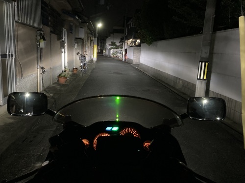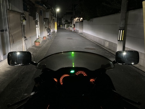がっきぃさんはこれが眩しくてミラーを折り畳んだのか、申し訳なかったなあ。強力なLEDライト、きちんとLOWビームにしていないと思わぬところで廻りに迷惑を掛けてします。それだけ強烈な光であるという事。何はともあれ、暗い時間帯の走行があまり得意では無い私にとっては、この性能はありがたい。カタログ値の耐久年数はどうか持ちますように。