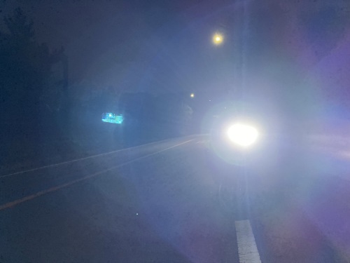 県道30号を南下して五條手前まで走ってもまだ真っ暗だった。少し路肩に停めて外から観た時にどうなのか確認をしてみる。充分明るいが、光軸より上からの視線であればそこまで眩しい事は無い。ところが・・・。光軸に入る、もしくは光軸より下がった時の光の強さは半端無く驚いた。 この光が直接目に入ると御迷惑になりそうなので注意しなければ、という位の明るさだ。