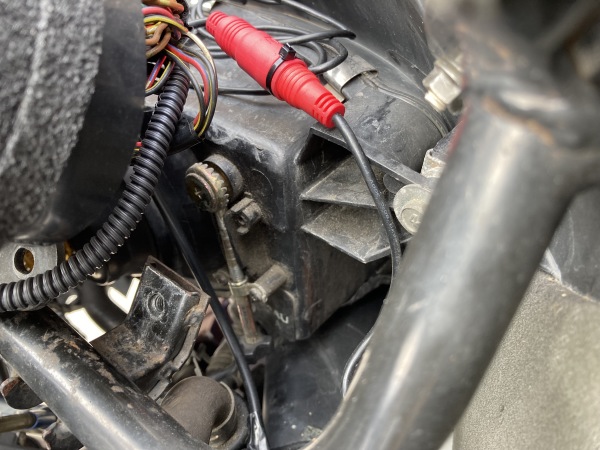 御助言頂いたので、ダメ元で再度挑戦してみる事にする。一週間前にメーターまで動かして調整つまみの場所を確認。その際にカウルは脱着せずともアプローチ出来る事も確認している。調整用つまみはライト右上にあるので以下手順で行った。