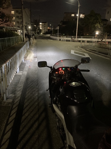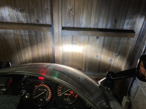 改めて今のZX-11のライト照射状況を見てみると、Lowビームで遥か先まで見通せて、Hiビームだともはや昼間同様の視界が確保されている。それはありがたいのだが、裏を返せば対向車や歩行者は眩しさを感じているの可能性がある。車検時に赤男爵店で光軸調整済なので多分法規上は問題無。但し実際に乗っている感覚としてはハロゲンやHIDに比べて光が全体に散っている感じがする。