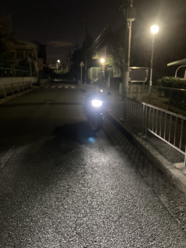 Lowだと光軸がかなり手前の路面を照らしている感じ。少し光軸を下げ過ぎたかな!?もう少し上げようか、とも思ったがHiビームにすると丁度路面の先の方まで光が届き、イメージとしてはハロゲン時代のLow/Hiに近くなった。これならば対向車・歩行者も目がくらむような事はないだろう。暫くこれで走ってみる事にする。