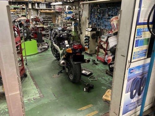 ところで・・・。「今回のトラブル、メーターケーブルで良かった。メーターが故障だったら大ごとだし、予備メーターを頂いてはいるけれど、愛着もあるしオドメーターも刻んできたこのメーターが好きなのでホッとしました」というお話をしたら、「メーター自体の故障であっても、機械式であればなんとかなります」とT工場長。赤男爵店には計装関係の専門部門があってリペアをしているらしい(最新の多機能メーターは難しいみたいだ)。この辺りは今後も乗り続ける決心をしている私にとってはとても心強い。2年前には外装パーツの専門部門でフロントフェンダーを修理して貰ったが、それ以降は今のところ全く問題無く走れている。その辺りは赤男爵店の凄いところでもあり強みでもある。もっと宣伝すれば良いのに。