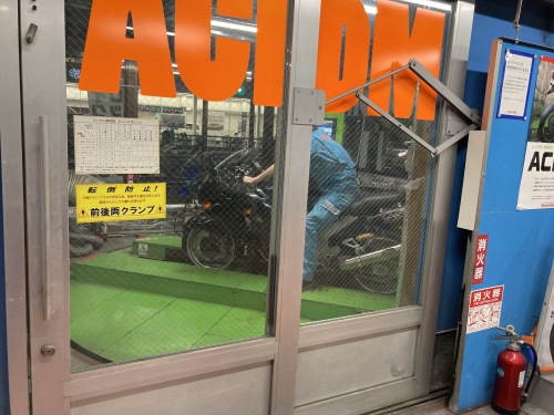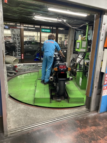 スピードメーター誤差測定の為、久しぶりのACIDAM。単に前輪を回して測定するだけなのだが、ひな壇のようなターンテーブルに入ってグルっと