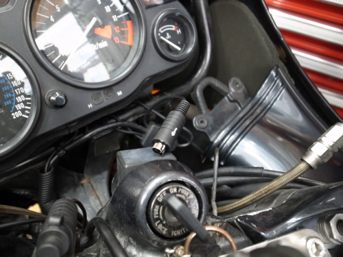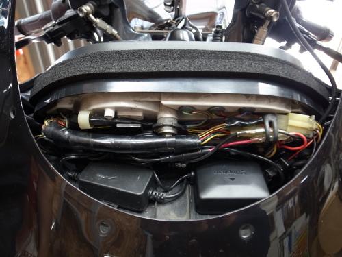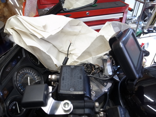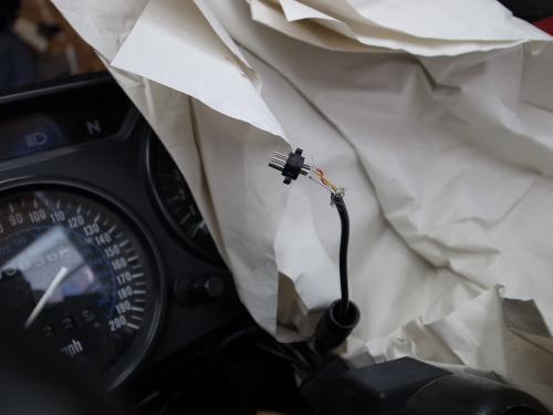 無事接続完了。今後もバイク屋での修理で脱着がある筈なので、コネクタ位置を白ペンでマーキングして頂いた。これでピンが折れるような事態は避けられるだろう。