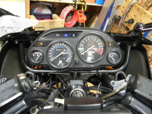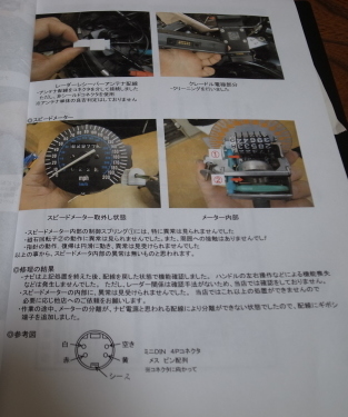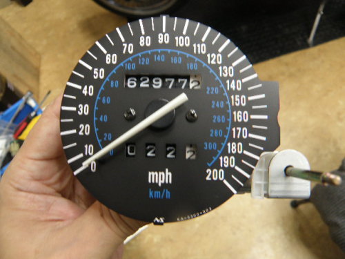スピードメーターを取り外して、機能チェック。幸いこの状態で確認する限り、メーター自体の不具合は認められなかったようだ。