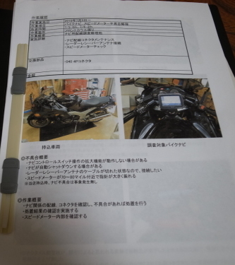 ビックリしたのは作業報告書。カラー写真と図示付で整備内容・所見をカラー3枚で纏められていて、とても判り易いし今後の参考になる。これはもはや作業報告・診断”カルテ”と呼んで差し障り無いレベルだ。