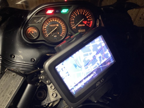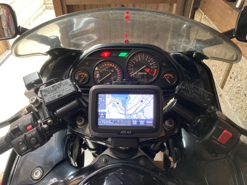 地図が旧い事は、大まかなルート確認は出発前からしているので実はあまり不利にならない。尽きるところ、ナビを最初にセットしてしまえば後は縮尺/音量調節は手元で操作しながら画面を一切触る事無く目的地まで辿り着く事が出来る。ヘルメットを被り、厚手のグローブをして、なおかつ四季にさらされるバイクで安心して使えるナビシステムは、実は稀有な存在なのだ。ちなみにYahoo!カーナビでは音声でかなりの操作が出来るらしいが、真夏の炎天下、スマホのマウントはあまりしたくない。スマホとBluetoothで連動させるスマートモニターなるものも出てきたが、機能はまだ不十分な印象。