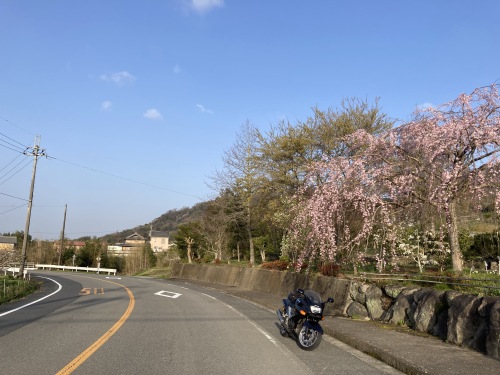 丁度あちこちで桜が咲き始めていた。農道沿いの見事なしだれ桜。