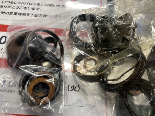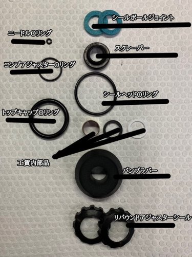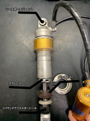 バンプラバーとリバウンドアジャスターシールはシャフト廻りの為、走行なりの劣化が見られたとの事。