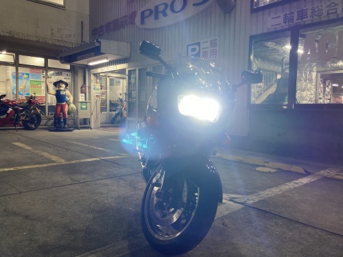 真ん前に立つと、目がくらむようなLED特有のキツイ明るさだ。忙しい中作業をして下さったT工場長にお礼を言って帰宅。・・・ああ来るまでのスクーターとはあまりに違いすぎる。跨っただけ、車線に合流して車の流れに乗っただけで、こんなに幸せになれるとは!!(そして周りは引く!?)。