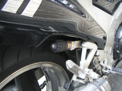この取付位置にする為に、若干リアカウルを切って貰った。切り口にはラバーで養生して、自然な感じに仕上げて貰った。 |