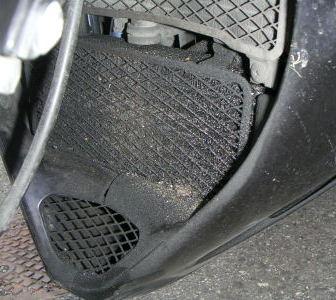 (オイル漏れでドロドロになった交換前のオイルクーラー)