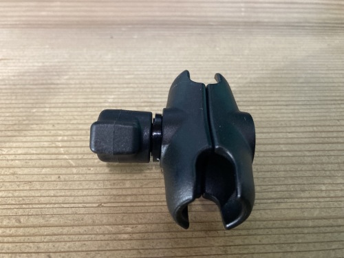 ショートアーム。事前の寸法確認で一番短いこのアームが、一番使い勝手良く安定すると想定。バイク・ナビシステムで使っているサインハウスのアームは金属製で高級感があり、それと比べると仕上げは粗くて”いかにもアメリカ製”といった感じ。但し締め付けるハンドルは回転させ易くて実用上は問題無さそうだ。