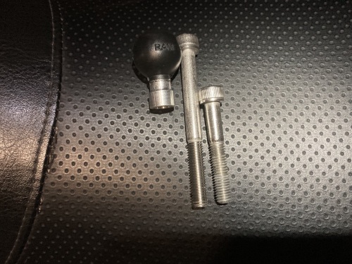 購入したのは、RAM・MOUNTSのM8ボルトベース1インチボール。既にハンドルアップスペーサで高さを上げている為、ボルトセットのものだと長さが足りない可能性が高い。故にボルトはこのベースが届いてから、必要なボルトの長さを測ってホームセンターに走った。