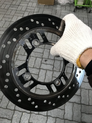 去年から耐用厚が減ってきていたリアディスクも今回交換。リアブレーキ、私は使う頻度は高い方だと思うが、フロントの補助的に使う事が多く拘りは無い。 今回純正から、赤男爵店オリジナルに変更。千葉のT工場長(ちなみに長年お世話になっている堺の工場長もイニシャルはTさん)曰く 「赤男爵店から直接ディスクメーカーにOEMで作って貰っている」との事。純正と比較してデザインは近くてお値段はかなり安い。 在庫流通が多い赤男爵店ならではの部分。あまりクローズアップされないが、この辺りはもっと宣伝しても良いと思うが。 |