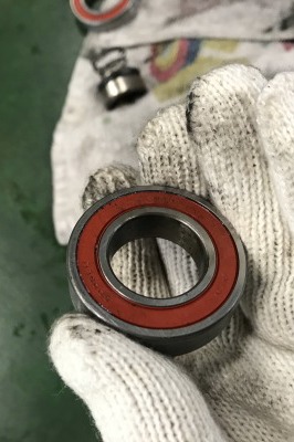 小振りな左がホイールベアリング。部品番号:B6005LLU(前) とB6006LLU(後)、1個\1,000×2箇所×前後2セット。右側少し大き目がハブベアリング。これは後のみで部品番号:B5206LLU.WA、1個 \ 3,500。状態は良好だったが、ホイールベアリングの1個が若干外側に錆が浮いていた(左側写真)。ベアリングの耐久性を考えたら5年で交換はどうかな?と考えたが、あと5年(トータル10年)、交換無で走るにはリスクがあるような気がする。結果的に今回,、5年/ 28,000kmで交換して正解だったと感じる。