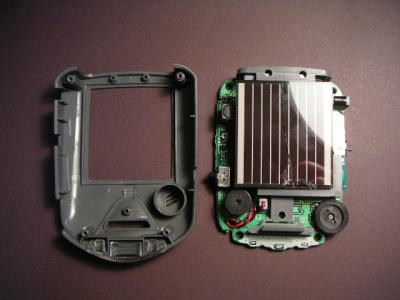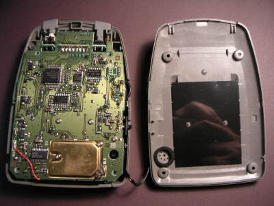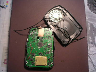 なんとか改造できる事が判って一安心。更に上部カバーを開けてみる。写真真ん中の銀色のボックスが恐らくレーダー波を感知するセンサー。 |