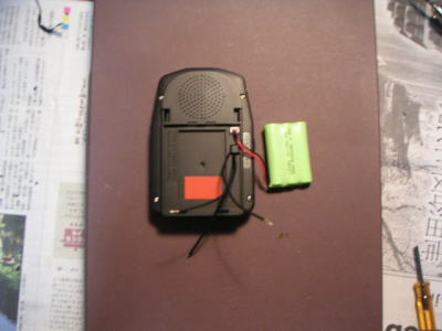 電池ケースを本体に取り付けてなんとか完成。 はんだでの穴あけ作業で、余分にあけすぎて若干隙間があいているのはご愛嬌。 結局慣れない作業で3時間掛かってしまった。 でも、最終テストでちゃんと作動している事が確認できた時は嬉しかった。 |